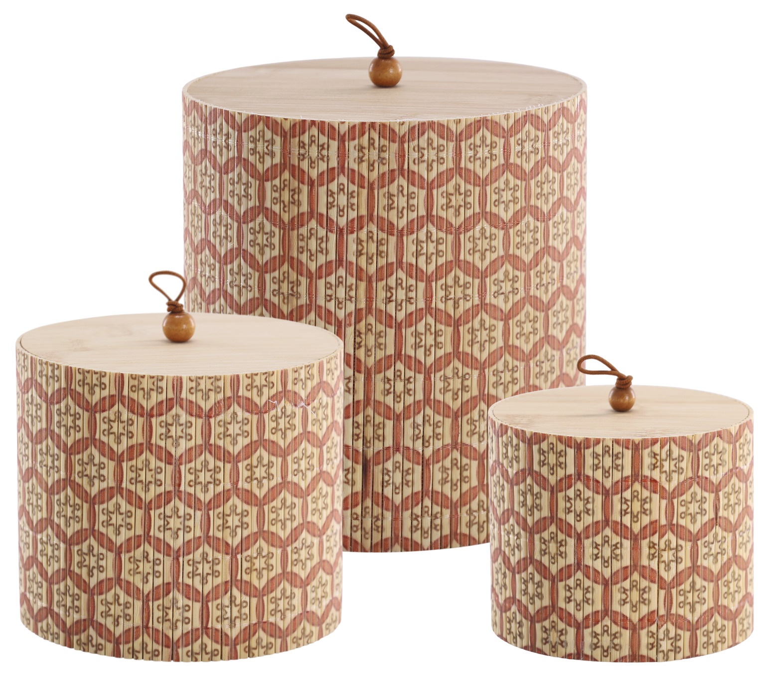 Material: Bambu. Mått: 15 x Ø15 cm / 10 x Ø12 cm / 8 x Ø10 cm.