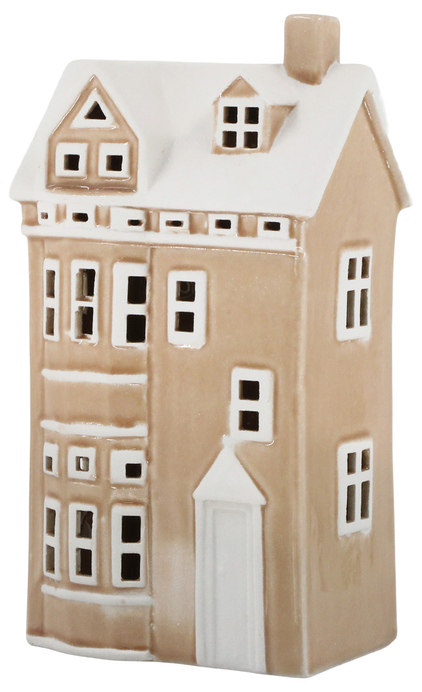 Skapa en mysig och stämningsfull känsla hemma med denna charmiga ljuslykta i form av ett hus. Med sin mjuka färg och snötäckta tak sprider den ett varmt sken när du placerar ett värmeljus inuti.