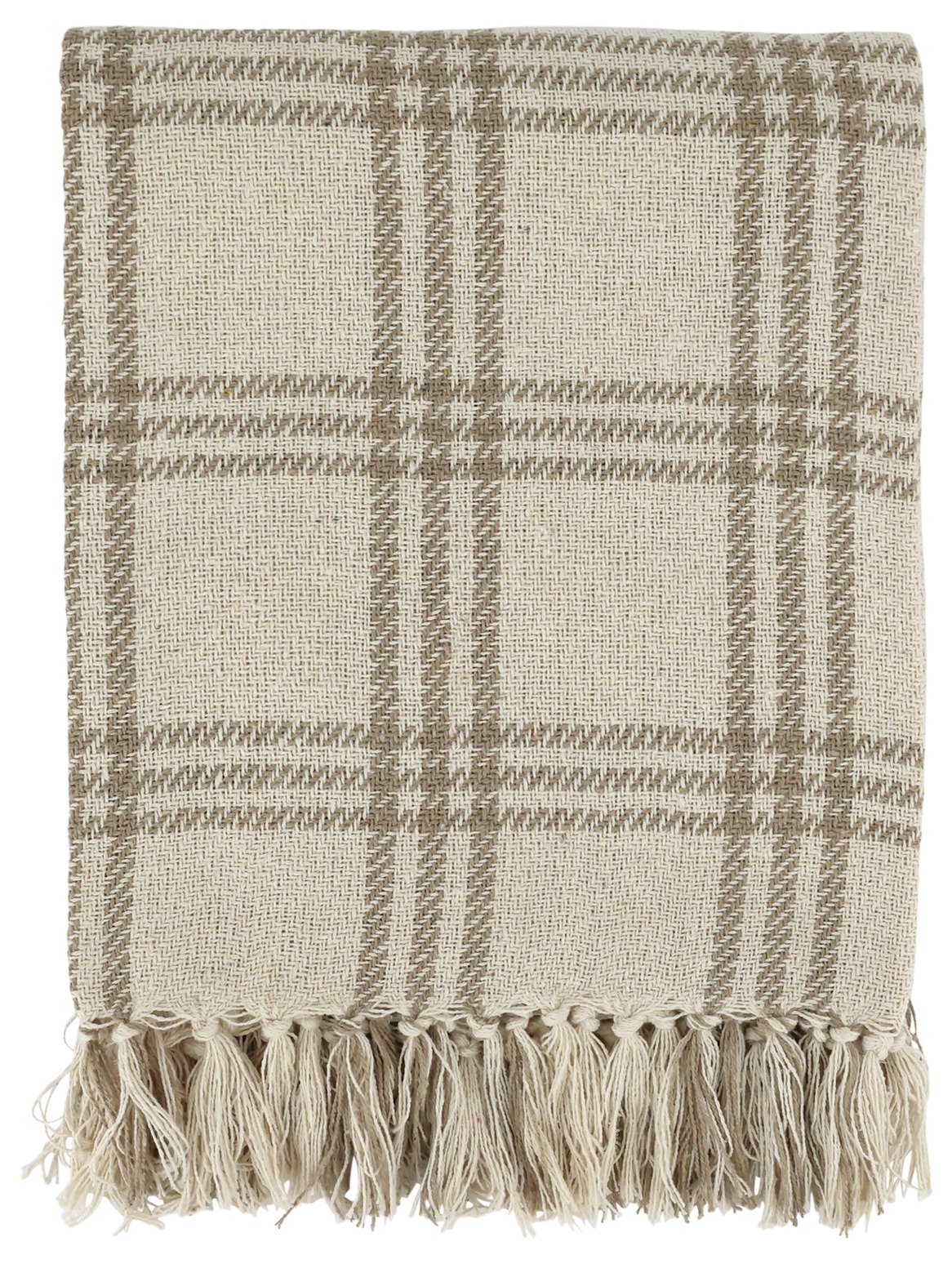En stilren och tidlös pläd som passar i alla hem. Den varma beigebruna rutiga designen och de dekorativa fransarna gör den både klassisk och lätt att matcha med andra textilier. Perfekt att svepa om sig under kyliga kvällar eller att lägga över soffan som en inbjudande detalj.