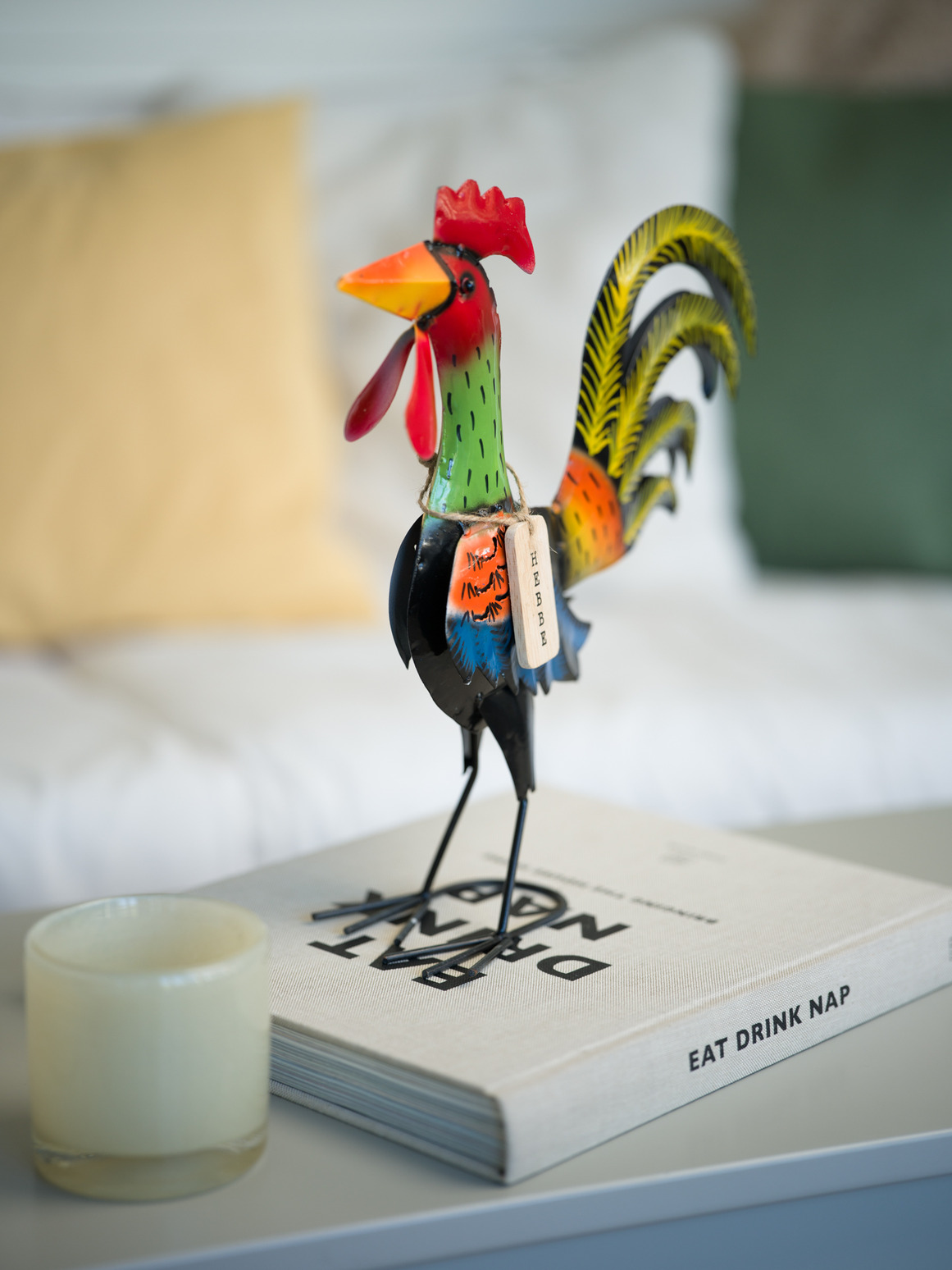 Varje tupp är tillverkad och målad för hand, vilket gör att varje exemplar är unikt i sitt utförande. Små variationer i färg och detaljer kan därför förekomma och är en del av charmen.