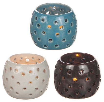 Skapa en varm och stämningsfull känsla i hemmet med denna dekorativa ljuslykta i glaserad keramik. De små hålen släpper igenom ljuset på ett vackert sätt och ger rummet ett mjukt, levande skimmer.