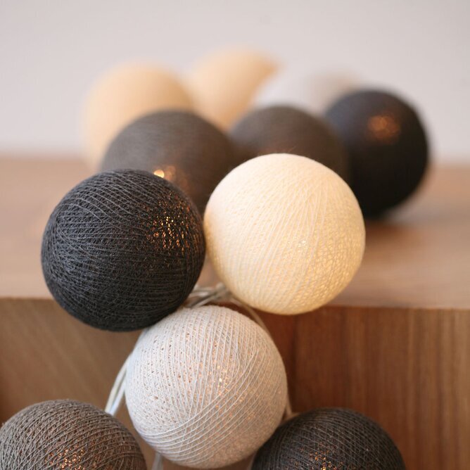Använd ljusslingorna som dekoration, mysbelysning, till festligheter mm. Fin att dekorera på dukat bord, i barnrum, sovrum mm. Bollarna är virade av färgat garn och är ca 6-7 cm i diameter. Finns en mängd olika kombinationer & storlekar där man kan välja vanlig stickkontakt eller USB-kontakt. Man sätter själv ihop ljusslingan med bollarna i den ordning som man önskar ha dem.