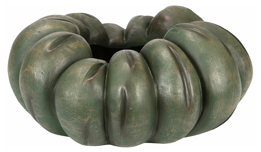 En unik kruka med en form inspirerad av naturens egna pumpor. Den dova gröna färgen och den rustika ytan ger ett charmigt uttryck som passar både som planteringskruka och som dekorativ skål. Fyll den med gröna växter, höstlöv eller använd den till ljus och små dekorationer – bara fantasin sätter gränser.