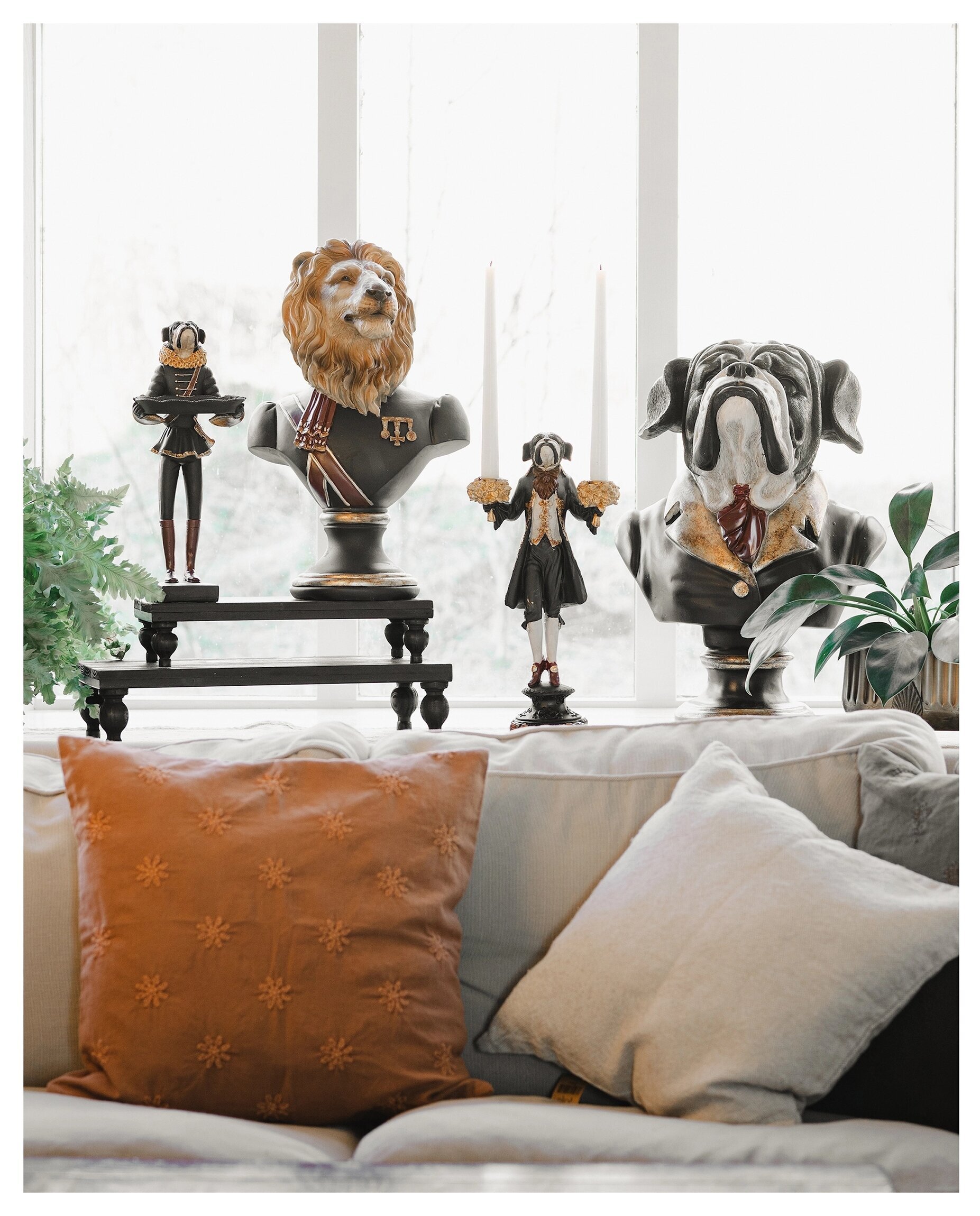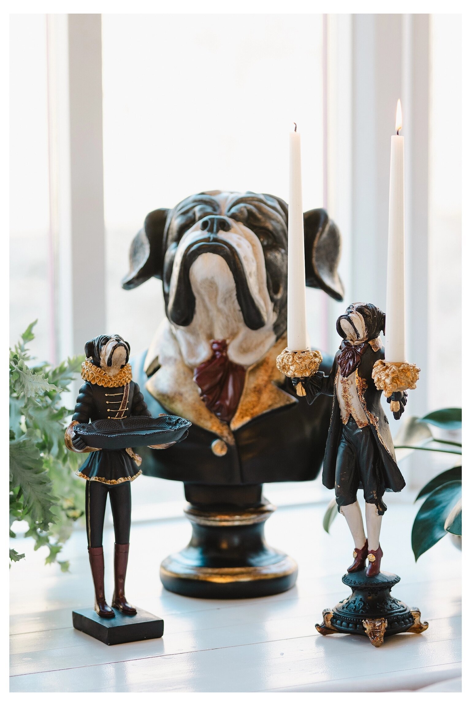En dekorativ och unik ljusstake i form av en bulldogg i elegant klädsel, från A Lot Decoration. Läs mer