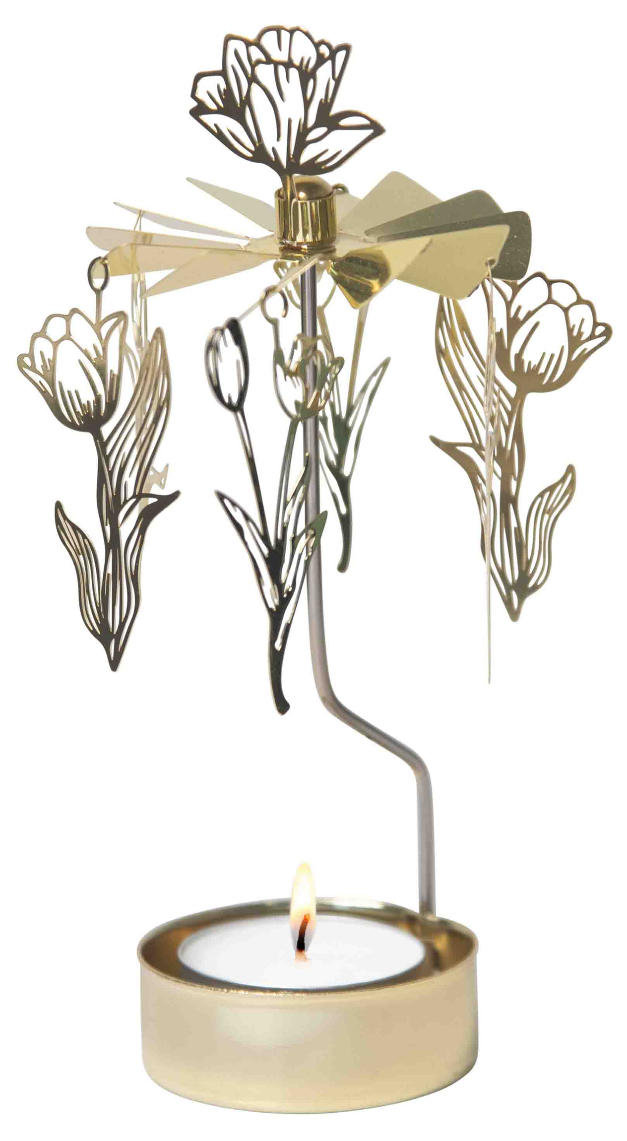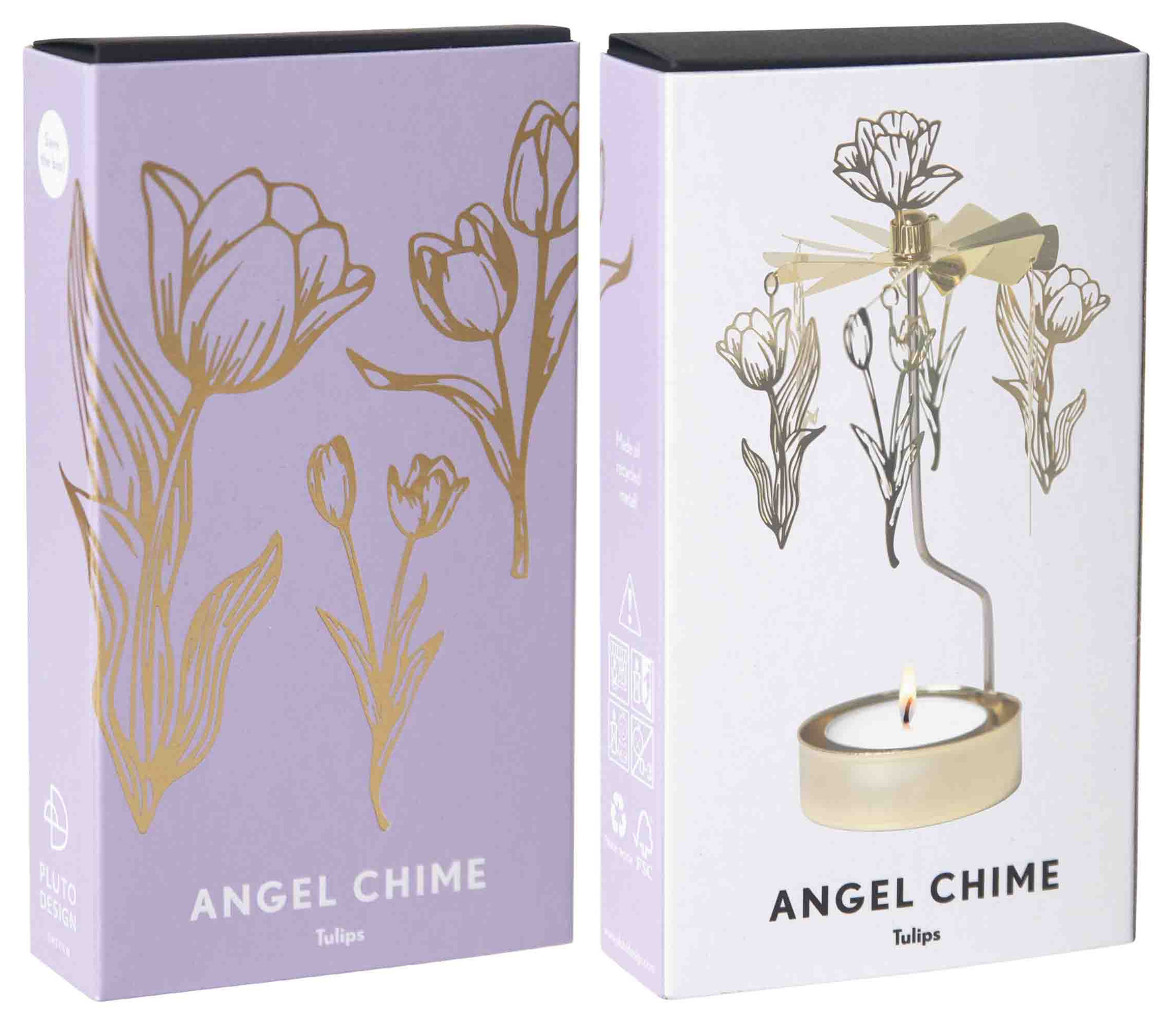 Låt vårkänslorna flytta in med detta eleganta änglaspel från Pluto Produkter. Dekorerat med vackra tulpaner som börjar snurra när värmen från värmeljuset stiger, sprider det både ljus och rörelse i rummet.