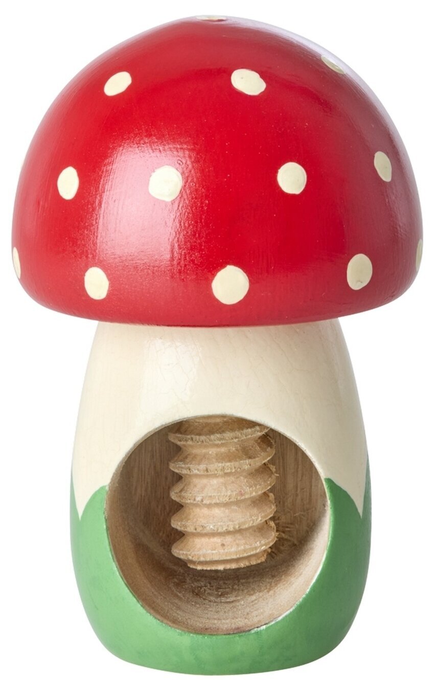 En charmig och praktisk nötknäckare i form av en röd flugsvamp – lika dekorativ som användbar. Tillverkad i trä med en klassisk skruvfunktion som gör det enkelt att knäcka valnötter och andra nötter utan krångel.